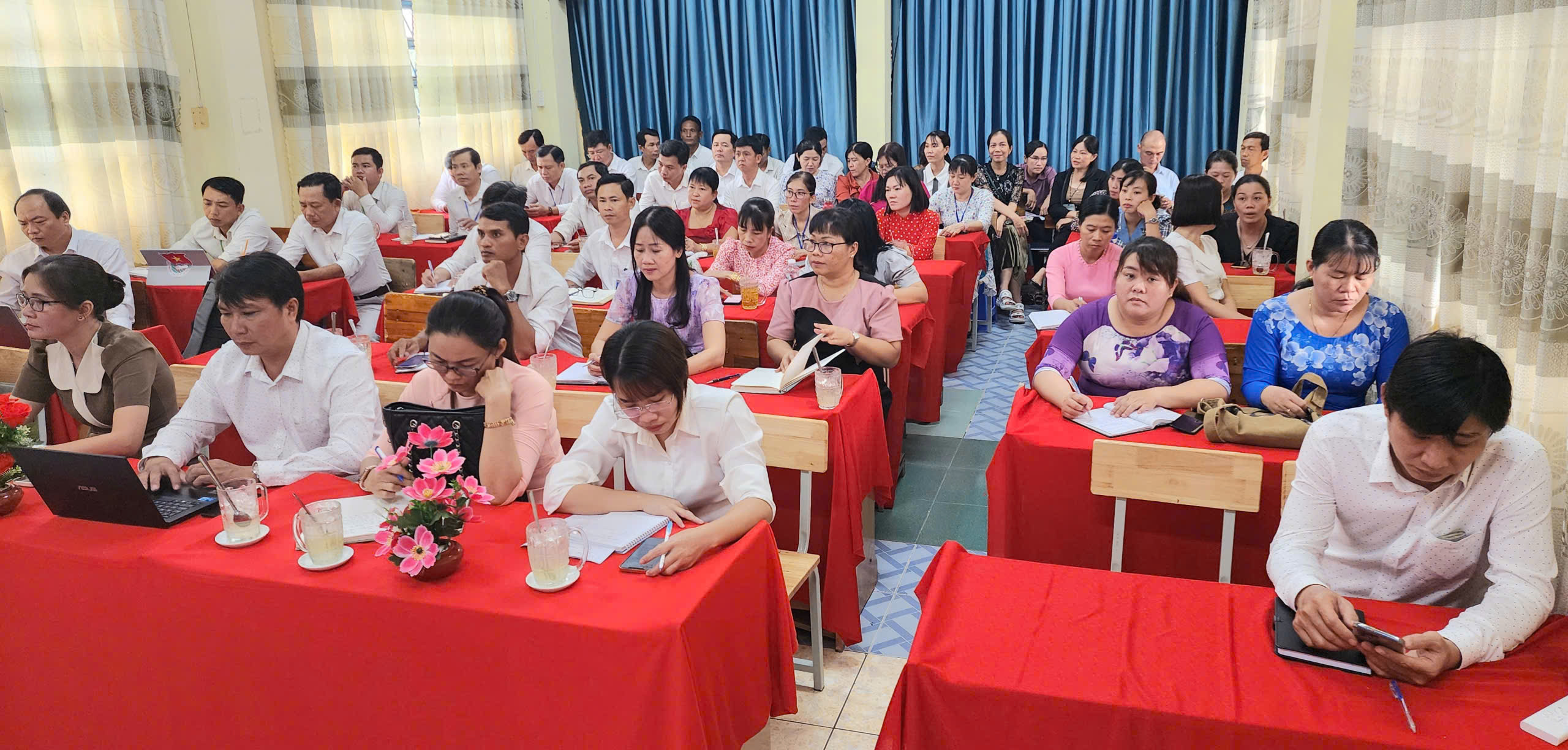 Tham dự Hội nghị có đồng chí Phạm Thanh Trọng – Hiệu trưởng nhà trường, các đồng chí trong Ban Giám hiệu, cùng toàn thể giáo viên và nhân viên. Hội nghị diễn ra trong không khí trang nghiêm, đoàn kết, dân chủ và trách nhiệm.